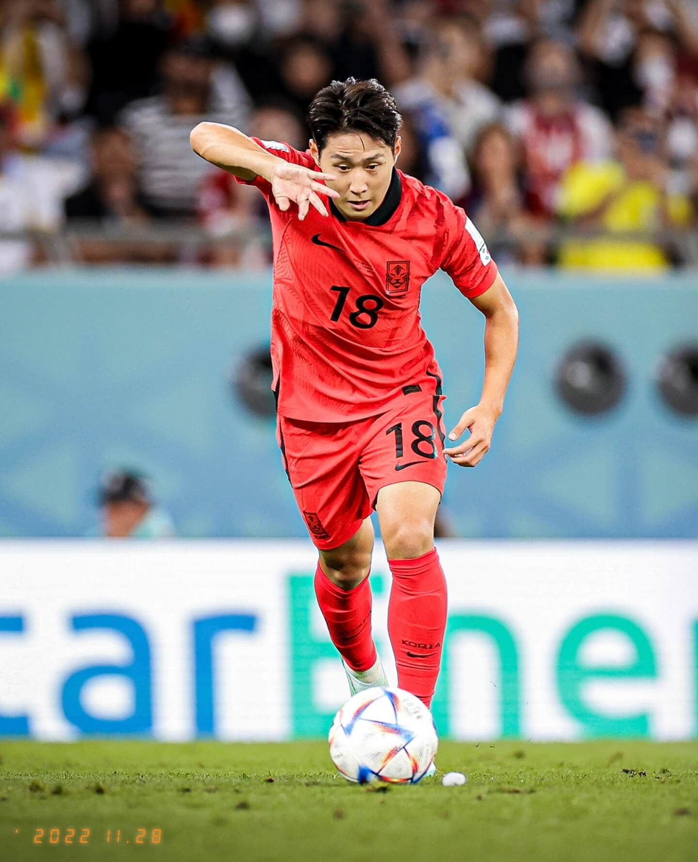 주장 손흥민 선수는 7번을 달고 그라운드를 누비며 이강인 선수는 19번을 달고 출전합니다.